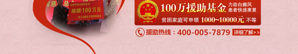 救 助标 准 申 请流 程 救 助范 围 在 线咨 询成都白癜风医学研究院附属医院作为西南地区最具影响力的白癜风专科医院,至今拥有二十年专业白癜风技术沉淀,汇聚西南地区最具权威性的白癜风顶级专家团,并与世界各大学术机构和医院长期保持技术交流,凭借精湛的祛白技术、数万例的临床成功案例获得白癜风患者及同行的一致高度赞赏。